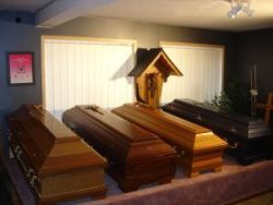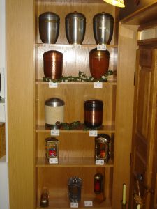 In unseren Räumen haben wir für sie eine große Auswahl an Särgen, Urnen, Kreuze, Deckengarnituren und Sterbewäsche ausgestellt.